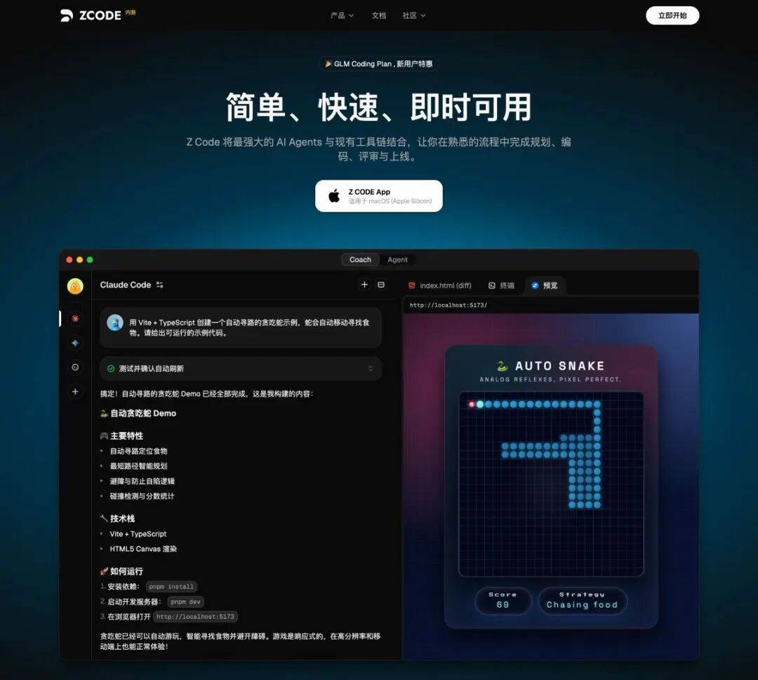 昨天,智谱正式发布 AI 协同开发工具「Z Code」,定位为一款轻量级 AI 代码编辑器,主打在统一的可视化桌面环境下,整合多家命令行 AI 编程工具的能力,借助自然语言对话降低使用门槛,面向开发者提供一站式 AI 辅助开发体验。