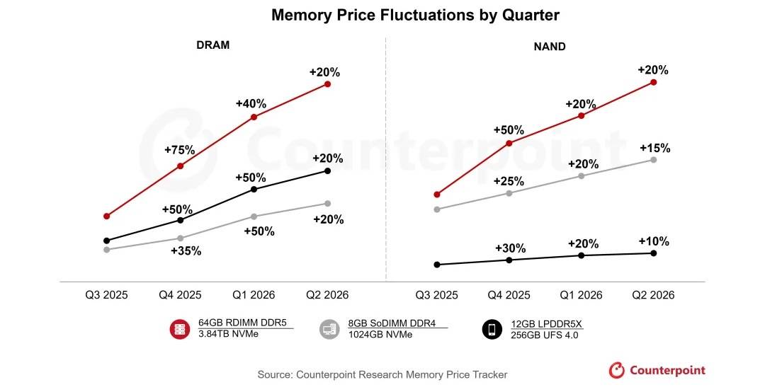 机构预计,这一涨势将在今年继续强化,并对智能手机、服务器及整机厂商的物料清单(BoM)成本结构带来深刻影响。